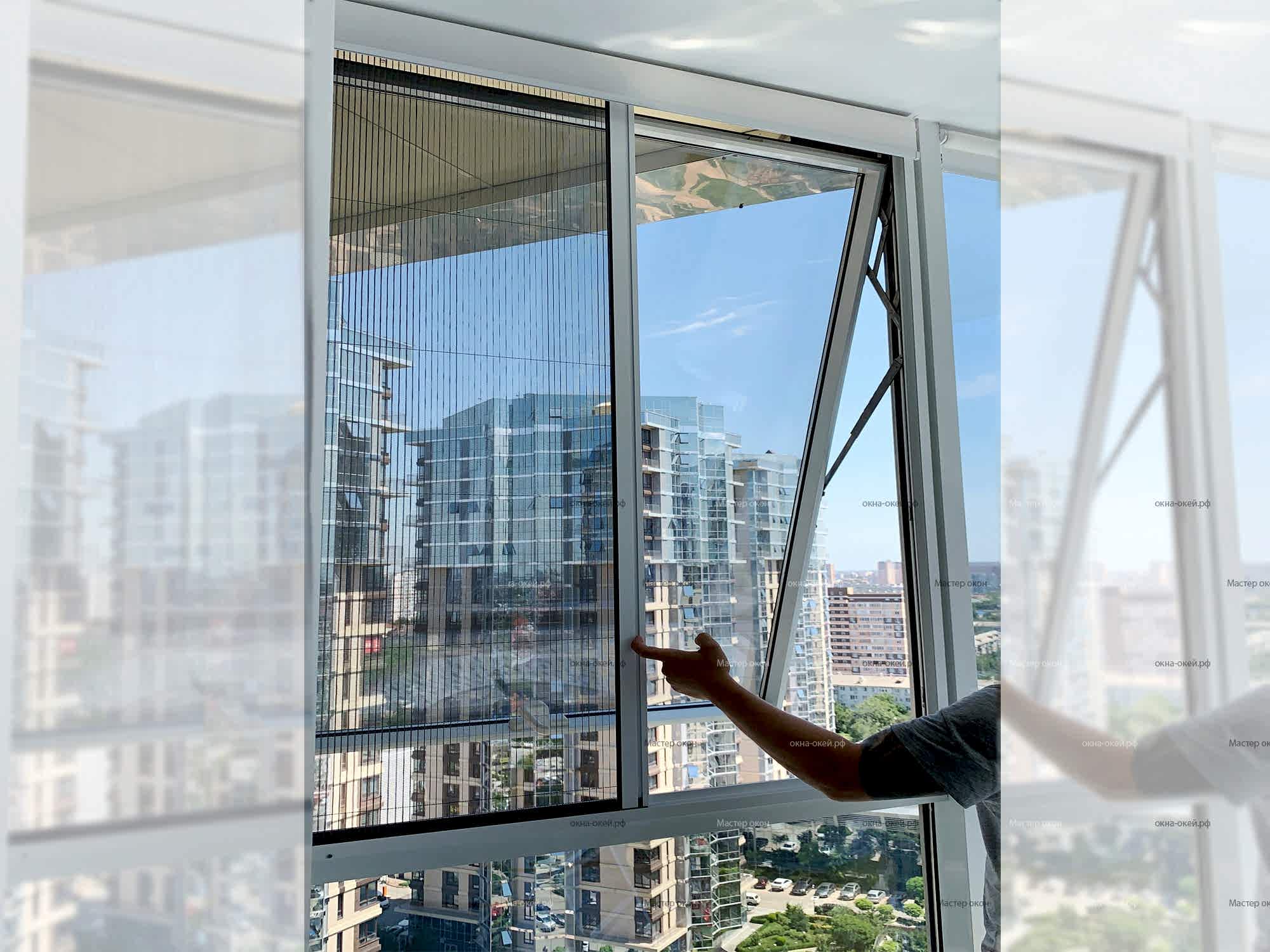Полотно плиссированной сетки, в отличие от других видов москитных сеток, не плотно закреплено в каркасе - оно может свободно передвигаться по Pin-Up открывая или закрывая проем. Сетка может полностью складываться, раскрывая оконный проем, и при этом не занимать лишнее место.