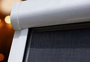 В развернутом виде сеточное полотно закрепляется на нужном уровне с помощью механических фиксаторов. Боковые направляющие и опорная планка обеспечивают ровное прилегание сетки с окну. Механизм оборудован щеточными Pin-Up для самоочищения сетки от пыли и мусора.